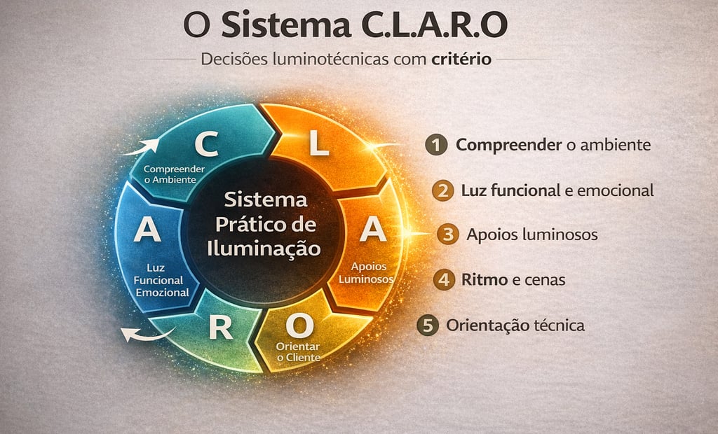 O método foi organizado a partir da observação de erros recorrentes em projetos de iluminação residencial.