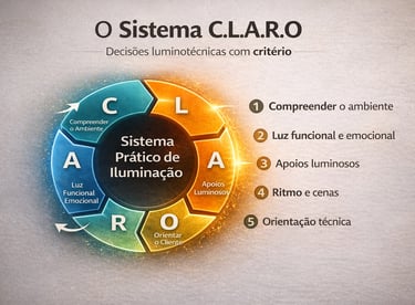 Uma estrutura prática para organizar decisões de iluminação que normalmente são feitas no improviso.