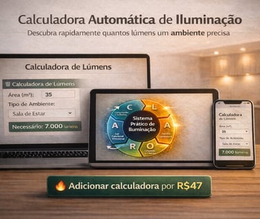 Permite estimar rapidamente a necessidade de luz em um ambiente com base na área e no tipo de uso.